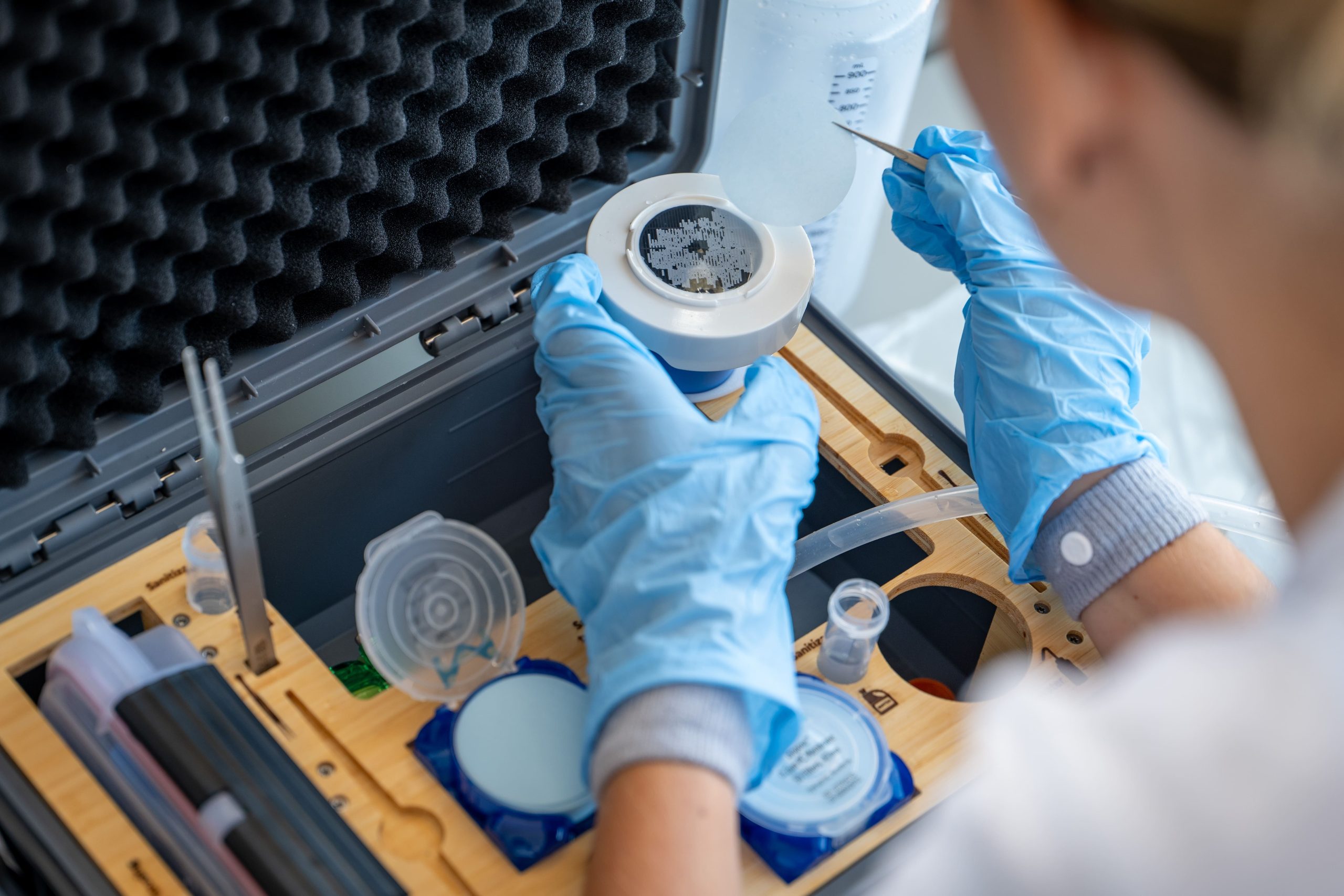 Ces échantillons permettront de mieux comprendre la diversité et la dynamique du plancton en Méditerranée, un indicateur essentiel de la santé des écosystèmes marins. Chaque jour, à heure fixe, le même protocole est appliqué : prélèvements, filtration et consignation des données dans les carnets de bord. Au moment du passage du satellite Pace à la verticale du bateau, des mesures bio-optiques ont également été réalisées à l’aide d’une bouée Hyper-Pro. Enfin, un échantillonnage régulier des eaux de surface a été effectué afin d’en analyser notamment la composition chimique et les propriétés optiques.