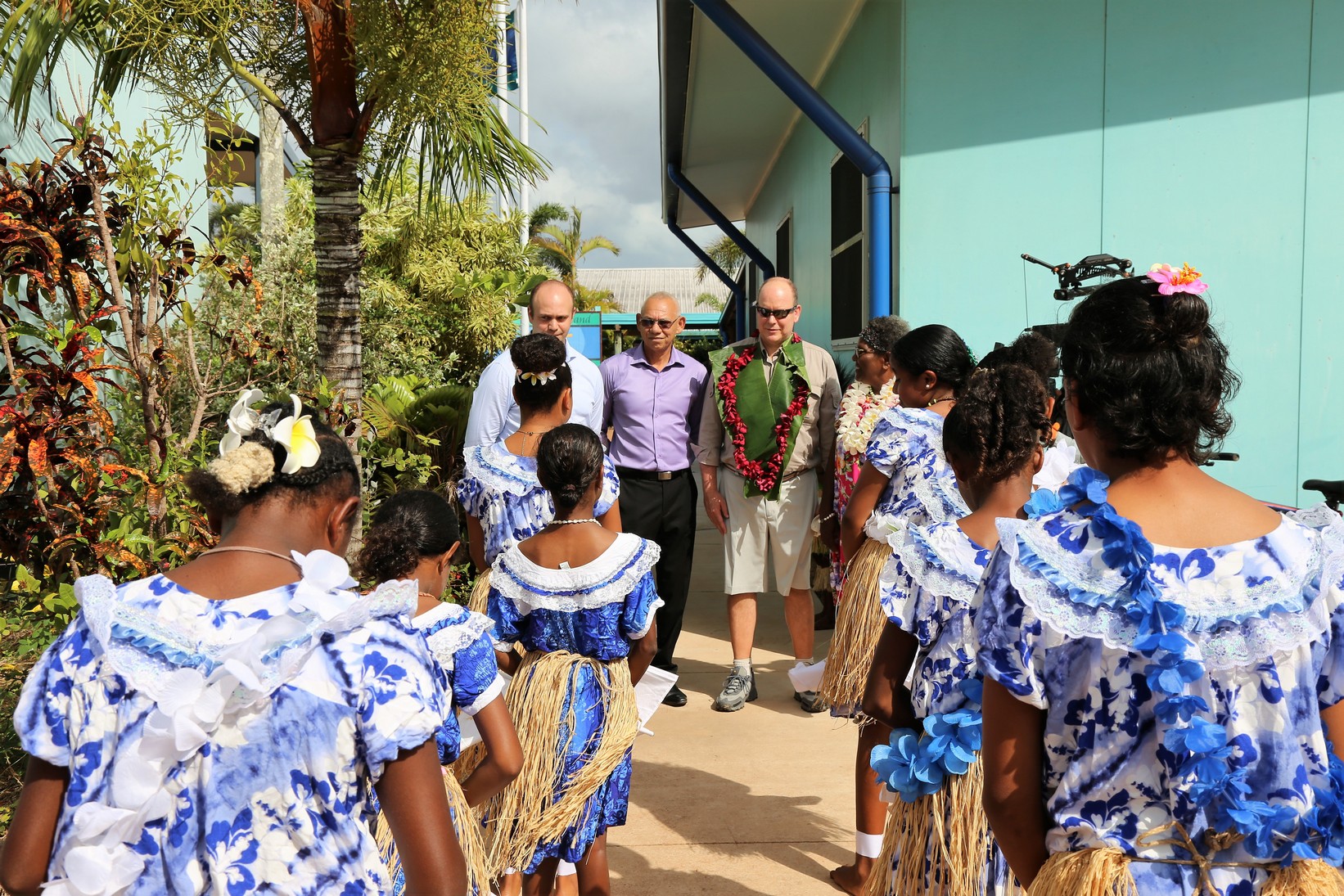 The Sovereign was invited to the primary school of Badu Island. He participated in an honorary graduation ceremony for the children of the island community. The speeches emphasized the principles bound to environmental protection, particularly the marine environment. The message consistent in all of the speeches given by the school headmaster M. Patrick Rhin, Council Representative M. Laurie Nona, and the Sovereign underlined the need to protect the future by caring for the environment. After the ceremony and the distribution of the presents brought by the Sovereign, the group posed for photos.