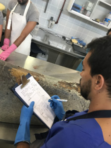 Rosa Pires invited us to the Museu da Baleia in Caniçal, Madeira where LifeMadeira is holding a monk seal necropsy workshop. The purpose of the workshop is to teach local veterinarians to perform a successful necropsy on the monk seals. So far, when there is a deceased monk seal found here in Madeira, they must bring a veterinarian in from mainland Portugal, or even farther to perform the necropsy.