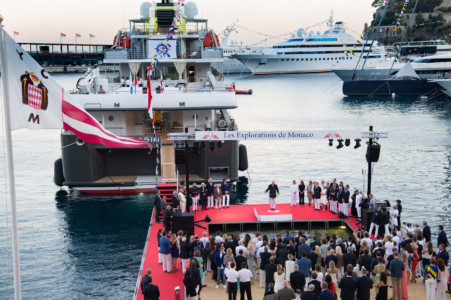 [/vc_column_text][/vc_column_inner][vc_column_inner width=”1/3″][gem_image src=”25956″][/vc_column_inner][/vc_row_inner][vc_column_text]In attendance of H.E. Mr Serge Telle, State Minister of Monaco (Prime Minister), Karmenu Vella European Commissioner for Environment, Maritime Affairs and Fisheries and Erick Solheim, Executive Director of the United Nations Environment Programme, His Sovereign Highness handed over to Captain Jean Dumarais the Monegasque flag, which was then hoisted by two crew members.