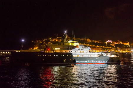 [vc_row][vc_column][vc_row_inner][vc_column_inner width=”2/3″][vc_column_text]H.S.H. Prince Albert II of Monaco announced the 2017 – 2020 Monaco Explorations Campaign at the United Nations Oceans Conference on June 7th 2017 in New York City. The campaign research platform, the M/V Yersin, departed the Principality of Monaco for the three-year journey on July 27th at 10.30 pm. Scientific researchers will begin the first of many explorations in the archipelagos of Macaronesia in the Atlantic Ocean (Madeira-Portugal and Cabo Verde) in August.
