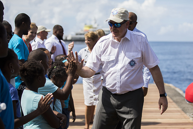 He is welcomed by Prince Rainier III and Jacques-Yves Cousteau.